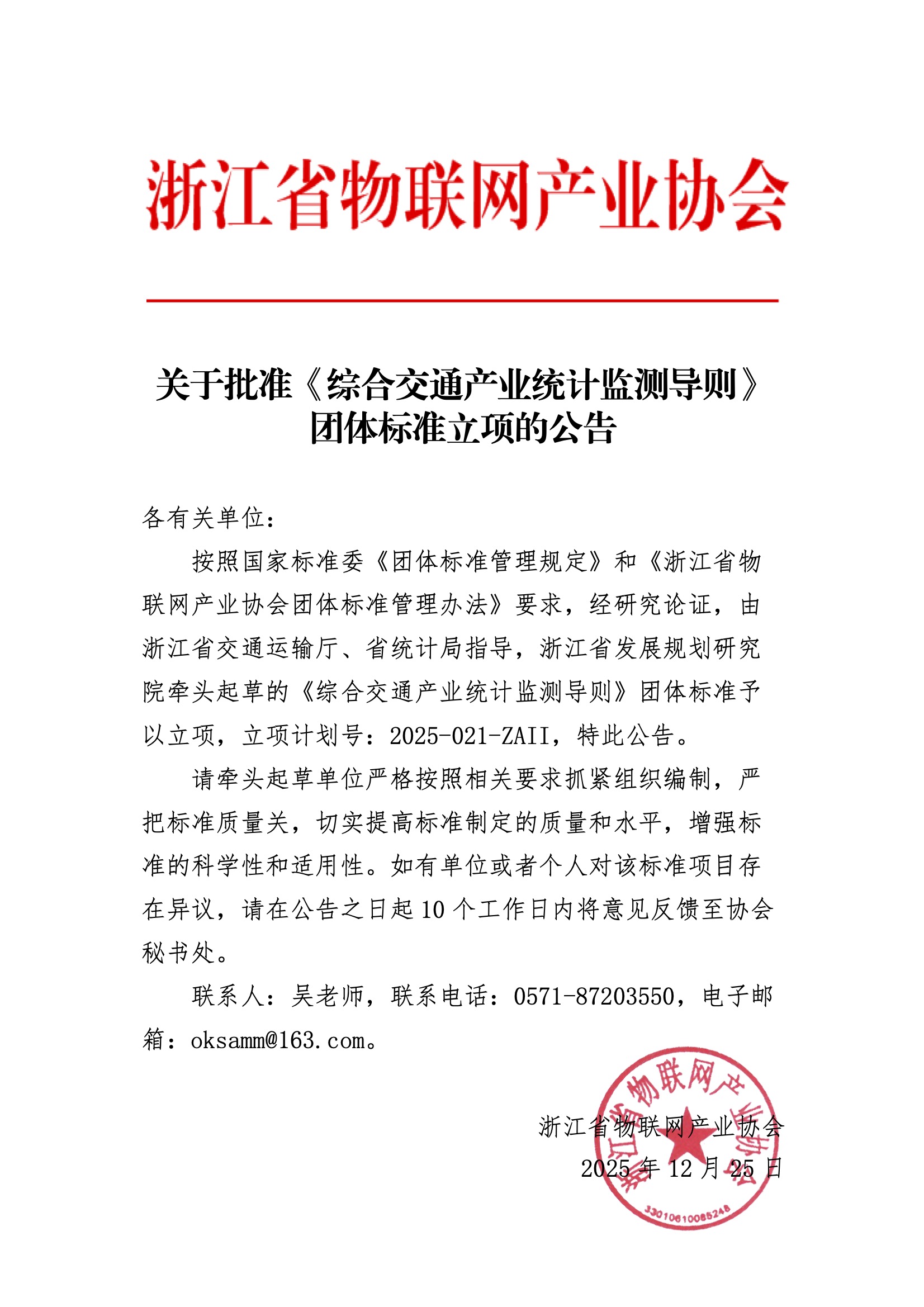 关于批准《综合交通产业统计监测导则》团体标准立项的公告